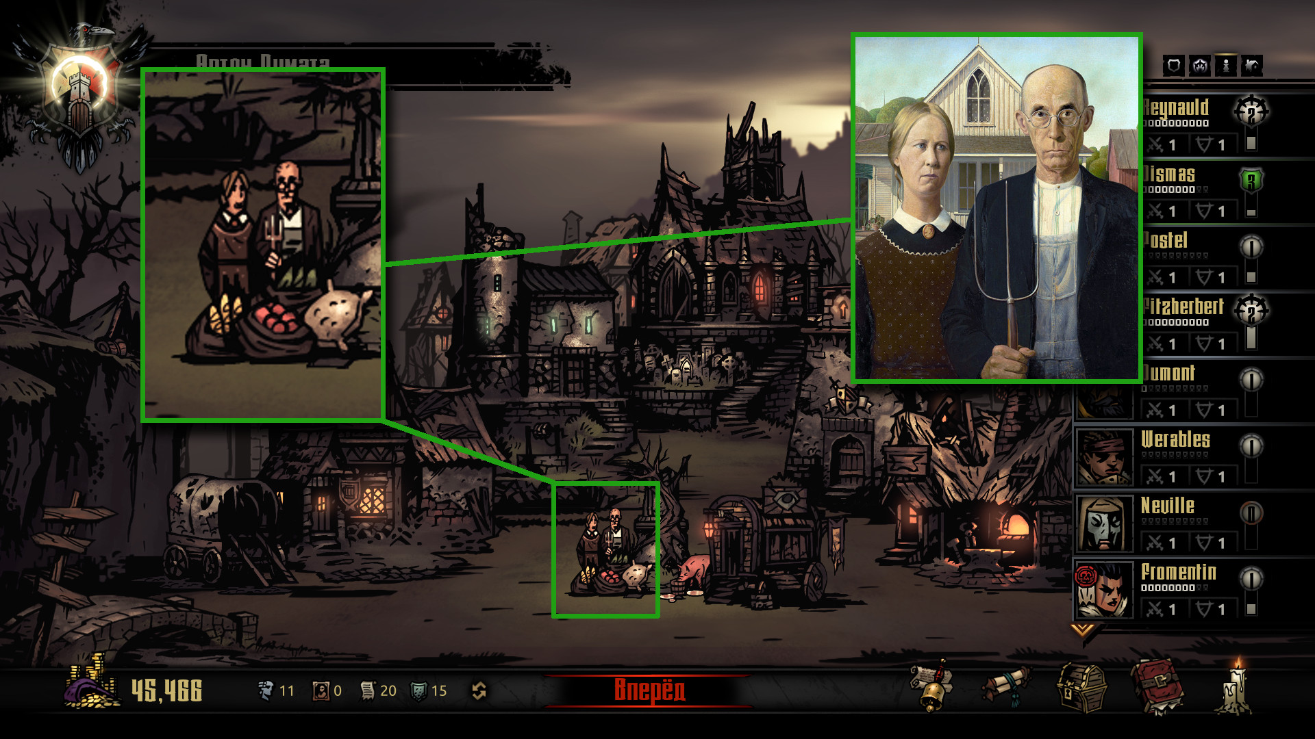 Вернулся после похода в город, событие, фермеры урожай привезли. Смотрю на фермеров, а там «Американская готика»: Вложение 22751 |