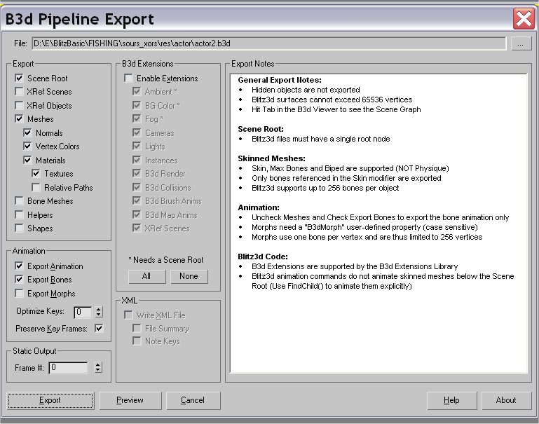 NitE, Спасибо большое! :) Так у меня вопросик... А вот если допустим у меня будет в 3дмаксе один меш, он будет прикручен к нескольким костям... Тогда если я буду пользоваться способом тормоза, то я смогу анимировать каждую кость по отдельности??? То есть кости ног будто чел бежит, кости рук будто он машет руками, туловище будто он наклоняется, а голову будто она поворачивается. Тоесть каждым костям разные последовательности анимации... И на всё это будет реагировать меш в блитце??? |