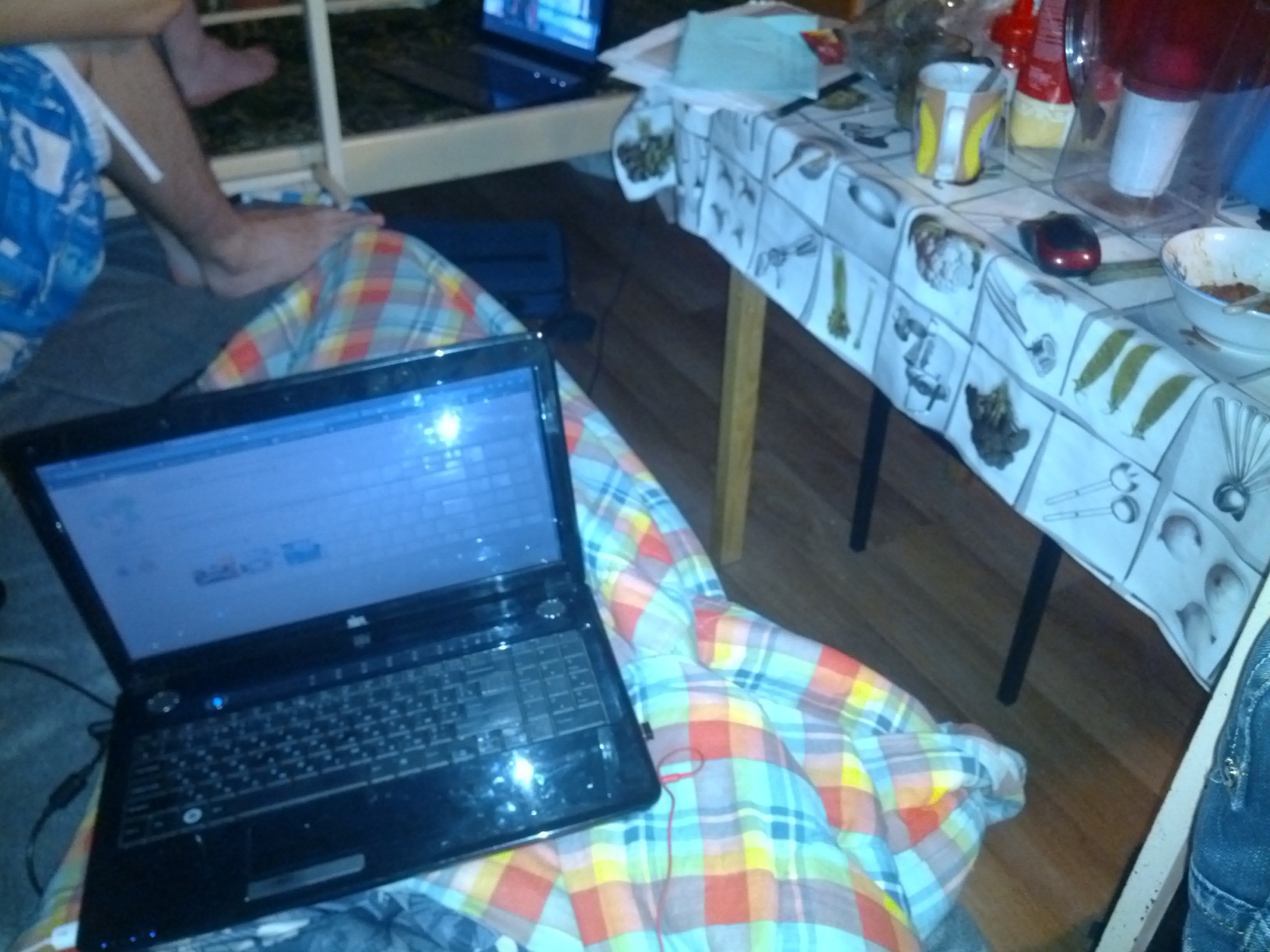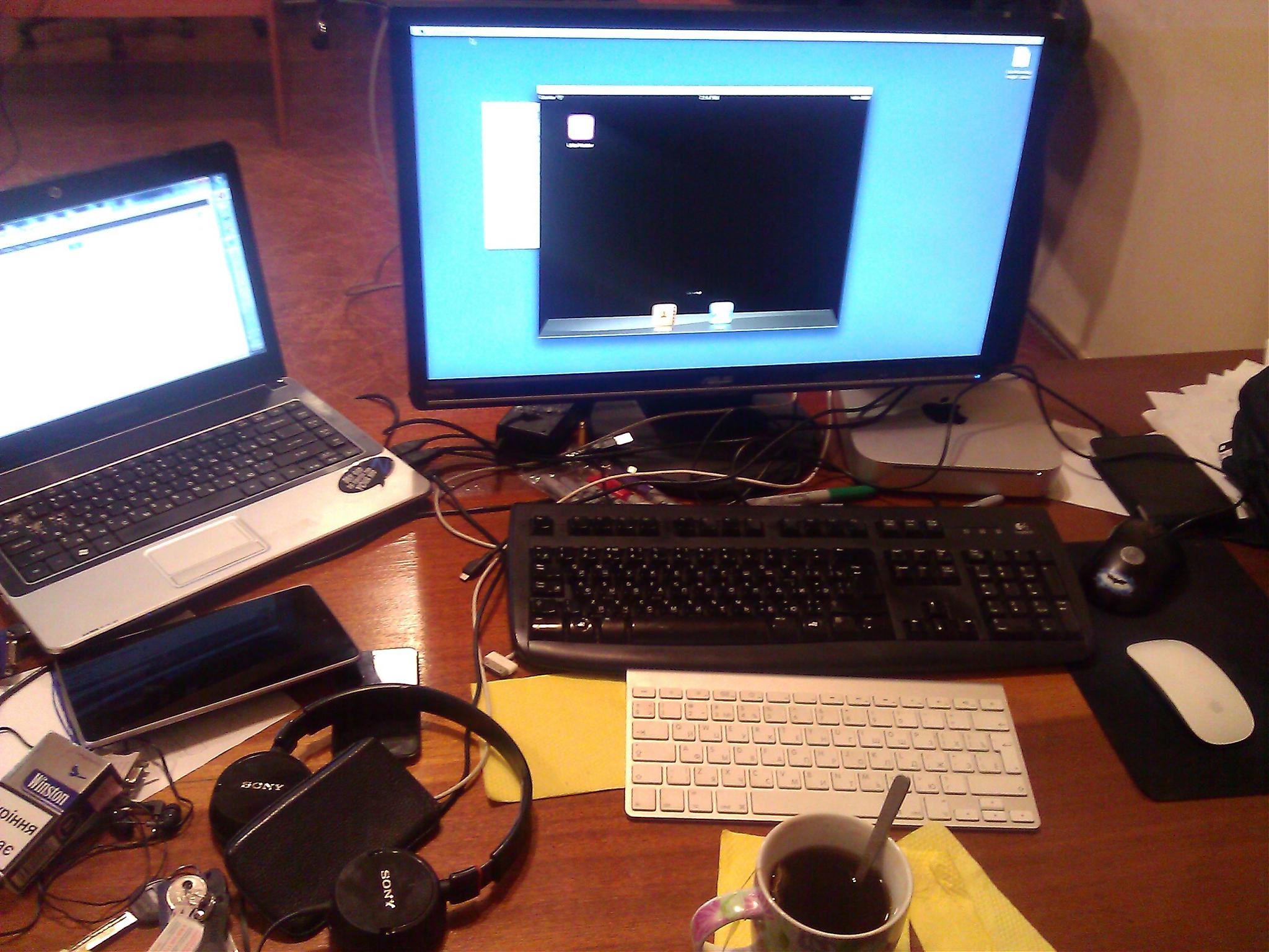 :rolleyes: 1 фотка, клава от мака под монитором, а сам под столом, кусок яблока красуется. |