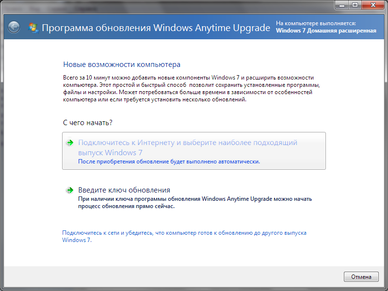 Панель управления -> Система и безопастность -> Windows Anytime Upgrade Попадаем сюда: Вложение 9461 |