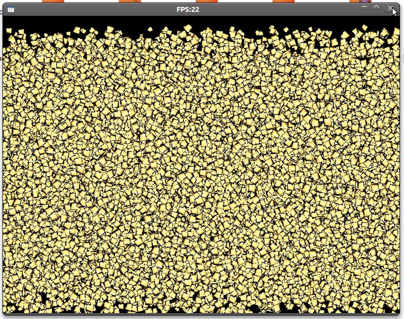 для сравнения есть старый метод и новый. цифра - количество картинок. linux: Вложение 13556 Вложение 13554 old 25000 - 13-15 FPS 25000 - 50 FPS 100000 - 18-19 FPS intel celerone 2.66GHz, 8600GT, Ubuntu windows: Вложение 13557 Вложение 13555 intel centrino 2x2.26GHz, 9600GT, Win7 old - 30-31 FPS 25000 -60 FPS (vsync) 100000 - 42 FPS |