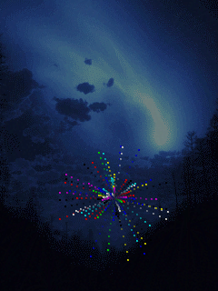 Вообще хотелось бы чтобы когда один из отрезков долетит до краев окружности(центр которой - "начало" фейерверка) он бы начал резко набирать прозрачность, таким образом поидее был бы эффект исчезновения, но к сожаления такого стандартного инструментария с прозрачностью нету.