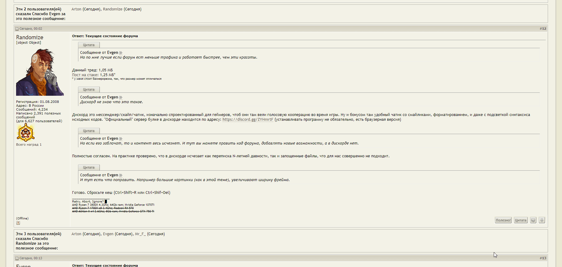 Ответ: Текущее состояние форума