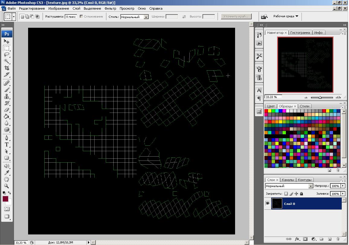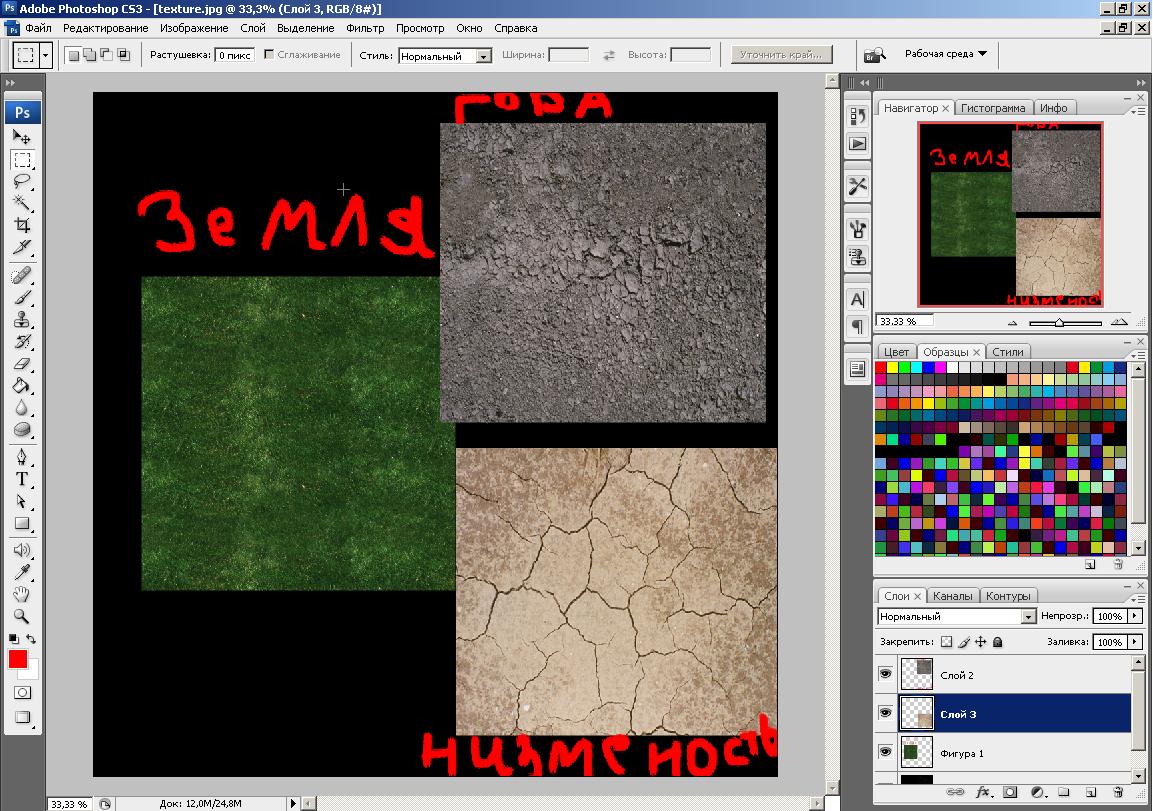 Текстуринг ландшафта №2(нормальный,но наверно извращенский) 1)Вот у нас есть ландшафт.Делаем камеру так, чтобы мы видели ландшафт сверху вот так как на рисунке ниже. Вложение 10918 2)Рендерим и сохраняем. Вложение 10919 3)Открываем фотошоп и создаем новый проект с размером 256 на 256(смотря какого размера ваш ландшафт). Вложение 10920 4)Теперь вставляем в этот проект наше ранее отрендренное изображение ландшафта(вид сверху) и пытаемся растянуть его по размеру 256х256. Вложение 10921 5)Готово.Выбираем любую кисть(желательно с 0% жесткости) Теперь открываем например текстуру травы в фотошопе.Жмем Редактирование->Определить узор. Вложение 10922 Вложение 10923 6)Теперь в нашем проекте создаем новый пустой слой.Он должен быть выделен(активен) , заливаем его любым цветом. Вложение 10924 7)Жмем по нашему залитому слою, два раза левой клавишей мыши(быстро).Открывается Меню Стиль слоя. Ставим галочку на Перекрытие узора. Вложение 10925 8 )Настраиваем теперь.Масштаб делайте по вкусу(тут можно поиграть с его параметрами ).Узор выбираем нашу траву. Вложение 10926 9)После,жмем это:Слой->Слой-маска->Скрыть Все. Все скрыли слой,поставили маску. Вложение 10927 10)Выбираем кисть с жескостью 0%,цвет белый.И красим наше дно речки.При этом маска должна быть активна(по умолчанию она активна).Если вы хотите стереть нарисованное переключите цвет кисти на черный. Вложение 10928 11)Таким же способом красим и наши горы. Вложение 10929 12)Теперь для остального ,накладываем любую текстуру ниже других.Так как на рисунке ниже. Вложение 10930 13)В итоге получилось вот что.Это конешно недоделанная текстура.Но с помощью этого способа,возможно сделать очень даже хорошую текстуру. Вложение 10931 ------------------------------------------------------------------------- Итак,вот все что я знаю.Если вы знаете способы лучше,и главное работающие в Blitz3d,Xors3d,то вы МЕН! ------------------------------------------------------------------------- Надо бы создать отдельную ветку, типа:Графические редакторы(использование при создании игр) или Уголка художника хватит? _____ Спасибо за внимание! ----- Да, кстати, использование модификатора Optimize очень эффективно для террайна. |