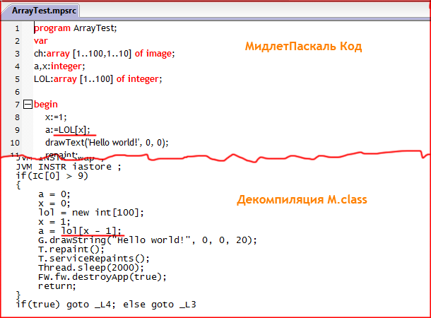 program ArrayTest;Казалось бы, какая разница? А вот разница то есть! Дело в том, что при компиляции МП автоматически приводит массивы к "нулевому типу". То есть первый из вышеприведенного примера превращается во второй. А запись типа x:=LOL[a]; превращается в x:=LOL[a-1];. "-1" как бэ является лишним и никому не нужным вычислением, почем зря нагружающим (пусть и немного) систему. Пруф: Вложение 16614 |