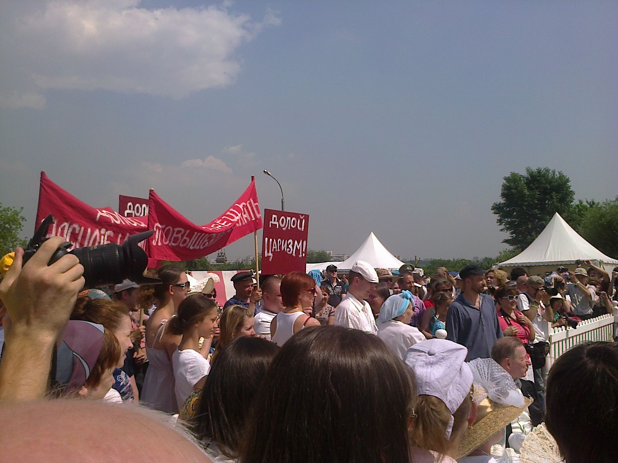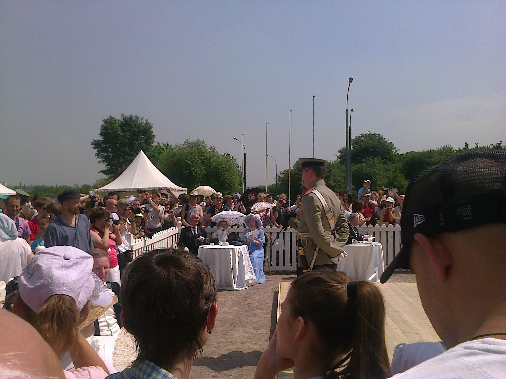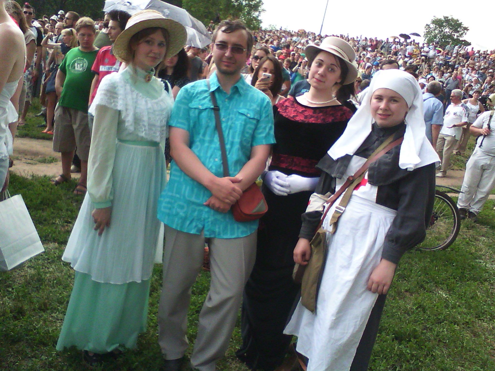 В прошедшую субботу я ненадолго (по фану) оказался на фестивале "Времена и эпохи" ( http://временаиэпохи.рф ). Фестиваль проходит ежегодно - в этот раз реконструировался 1914 год. ( Видео пользователя Times Epochs ) Фото / видео. Для любопытствующих, сразу скажу - вход бесплатный (0 USD). Послушать/посмотреть/потрогать - почти всё бесплатно. Разумеется, некоторые услуги (например, фотография в аутентичном костюме, предоставляемом на прокат) платны. Вложение 20604 На фото: служивый предлагает митингующим отодвинуться от французского кафе подалее, и не мешать господам отдыхать. Вложение 20605 Бунтовщики решительно не согласны и продолжают напирать. В ответ летят обещания пригласить городовых и решить вопрос жестко. Внезапно происходит анахронизм и господин с первой фотографии уточняет: в отличии от ____ [угадайте кого, припомнив ЧТО сейчас творится в реакторе]. ( Видео пользователя Artem Sokolov ) Площадок несколько. Они работают параллельно, так что у зрителя не происходит ощущения заскриптованности при переходе между локациями. Мимо проходят крестьянки с огромной корзиной пирожков (предлагая купить), офицеры, крестьянка, что-то ладно наигрывая на балалайке. Возле входа на территорию парка я купил за червончик (0.3 USD) газету у мальчика-продавца (образца начала века). Вложение 20606 На фото: мастер объясняет детали этапов производства. На выставке присутствуют и сопутствующие организации (которые неизменно соответствуют реконструируемой эпохе): я прослушал фрагмент рекламы-выступления агентства, проводящего генеалогические исследования и представление музея "Огни Москвы" (я как-то и забыл про него). Вложение 20607 На фото: посетители в костюмах в процессе фотосессии (официальный фотограф в кадр не попал). Уж не знаю - выдержка ли это реконструкторов, или предки знали какой-то секрет в изготовлении/носке костюмов, но на фотографиях очень жарко, а люди ходят в длинных одеяниях и всяческих "многослойных" костюмах, подчас, чёрного цвета. Насытившимся взглядом я пробежался по двум "фордам", походил кругами, и тут послышались звуки начала первой батальной сцены ( в этом году фестиваль приурочен к началу I-ой мировой) - "Атака Мертвецов". Вложение 20608Вложение 20609 ( маленький фрагмент газеты фестиваля) На используемый аппарат сложно было сделать вменяемый снимок происходящего "на сцене". Да я особо и не старался: в небе кружили 2 (3?) беспилотных вертолёта с камерами, да и на трибунах народ сидел не с пустыми руками (билет - 1000р (29.1 USD) ). Вложение 20610 (найди все вертолётики) Кульминация (наиболее сильный момент, но на ю-тьюбе вы найдёте over9k съёмок фестиваля с разных ракурсов): ( Видео пользователя Vetser88 ) Попросил девушек-реконструкторов о фотографии: рассчитывал отвлечь одну (т.к. люди на жаре устали), но дружно присоединилась вся группа - за что им спасибо. Чувствовалось, что для людей это - праздник их увлечения, а не работа-обязаловка. Вложение 20611 Горизонт завален; про некоторых, случайно попавших в кадр людей, мне не напоминайте - не мог же я ещё и толпу предупредить :) Спасибо за внимание. P.S.: Очень жаль, что Первая мировая незаслуженно мало рассматривается в курсе (школьной) истории: сначала - в связи с её империалистичностью, затем - в виду недавней, не менее жуткой, Второй мировой. |
