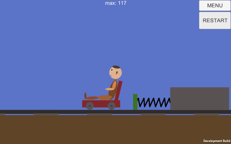 Предложения по разнообразию игрового процесса мотаю на ум. Для максимума нужно совпадение полностью сжатой пружины (первичное сжатие, а не удержание после частичного растяжения) и бегунка по центру (зелёная область). Физика пока что тяп-ляп, должно получиться "чётче". Звука всего два - пружина и секир-башка. |