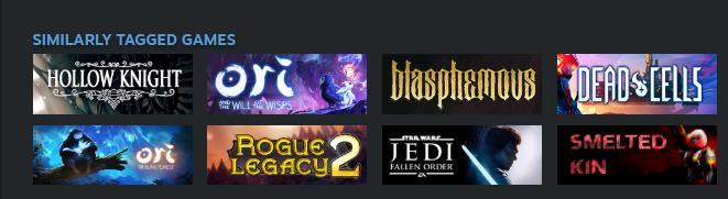 Рефами к игре являются другие метроидвании подобного толка (Hollow knight, Ori и тп), и в Стиме теги и фичи я поставил такими чтобы успешные рефы были среди похожих игр на нашу. Правда Стим меня перехитрил и у нас в списке похожих игр их вообще нет. Честно говоря даже не знаю как быть с этим. Цитата: