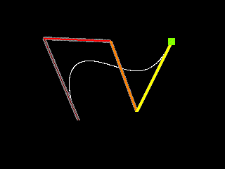 Описание Кривой Безье в Википедии Сам файл: Вложение 4600 Управление: ESC — выход Левая кнопка мыши — выбор точки \ отмена выбора Правая кнопка мыши — создание точки \ удаление точки ( при выбранной точке) SPACE — без вспомогательных линий \ со вспомогательными линиями SHIFT — рисовать \ не рисовать меню BACKSPACE —очистить Кривую Безье NUM1 — 16\32 битов NUM2 — 60\75 герц NUM4 — 640x480 NUM5 — 800x600 NUM6 — 1024x768 ENTER — начать построение NUM+ — + один шаг NUM- — - один шаг |