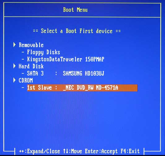 Отключаем от греха подальше все лишние винчестеры. Выставляем винчестер на который будем ставить загрузочным сразу после DVD-Rom привода, который выставлен должен быть первым.