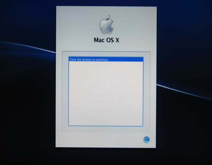 Некоторое время ожидаем загрузки установщика, любуемся на серебряное яблоко. Если индикатор загрузки замер, или на яблоке появился знак "STOP", сушите вёсла - приплыли. Причин может быть несколько, одна из которых DVD-Rom с которого мы ставим не является Primary Master.