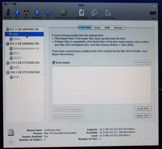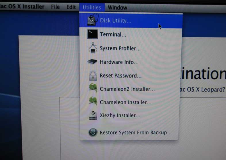 Вверху в меню давим кнопку Utilities и выбираем Disk Utility...