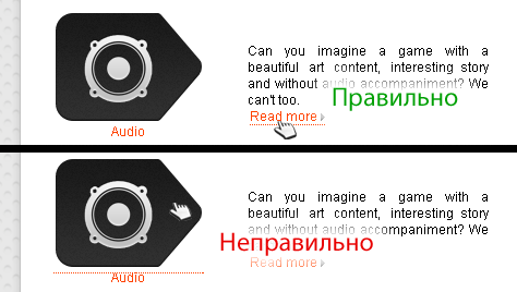 Вот. На верхней картинке указатель наведен на текстовую ссылку и у нее появляется border-bottom: 1px dotted #ff4200 и это правильно (: