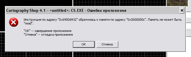 Cartography Shop, но при запуске вылетела ошибка (см.скриншот). Жму ОК - после чего программа закрывается. Появляется она не при каждом запуске, но при попытке переместить окно/развернуть/изменить размер или нажать на любой пункт меню (File, Edit..) - она сново "выскакивает".. Кто знает что это может быть?