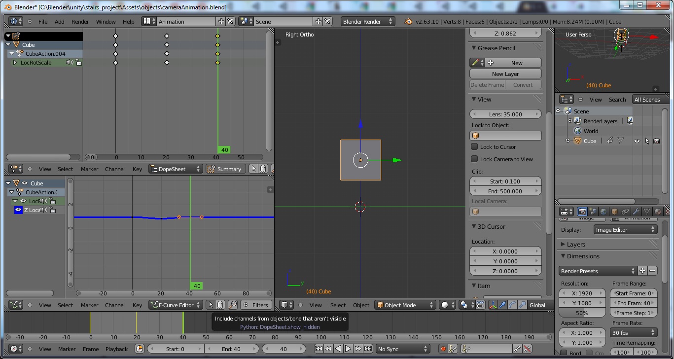 Создаю анимацию в Blender3d для камеры в Unity3d.