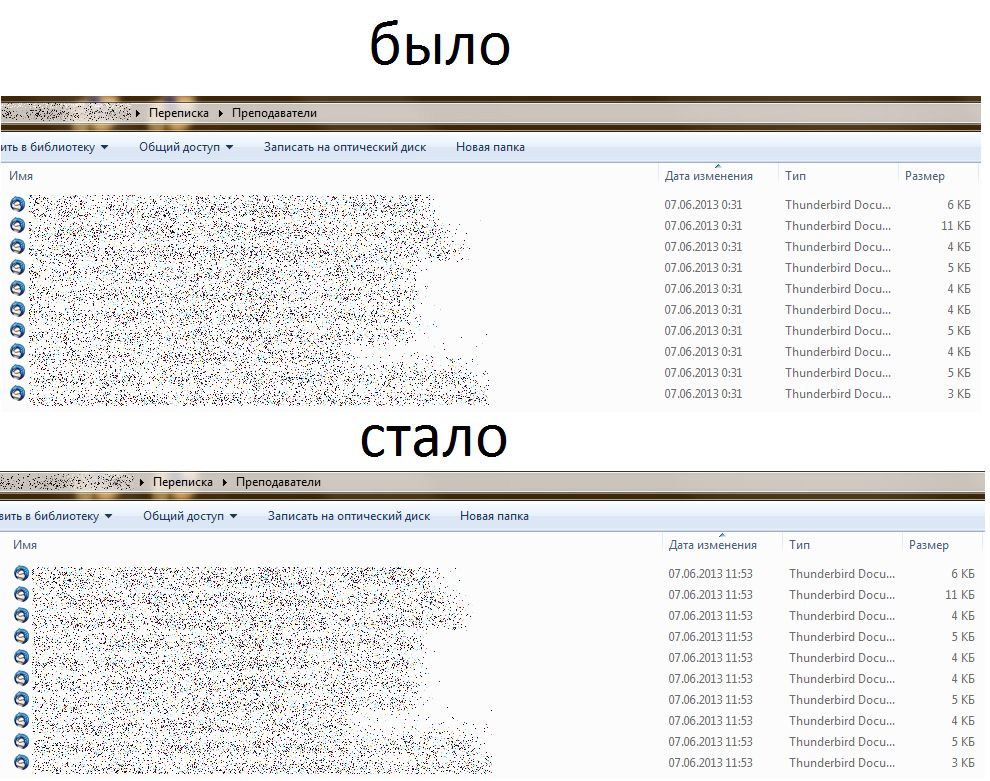 2) через 24+ часов (а можно и сразу после копирования/извлечения из архива) просто открываю папку с письмами (вариант: просматриваю их список в окне виндовго поиска)