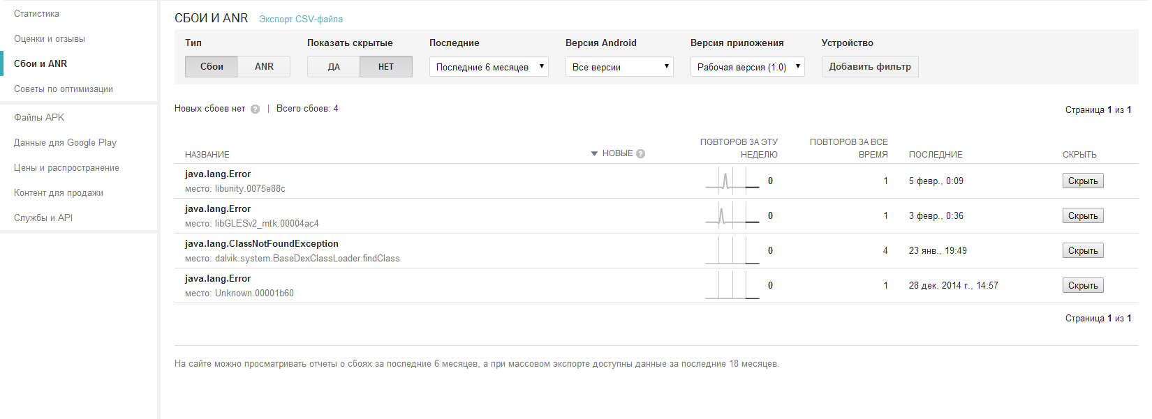 Гугл сохраняет краши.