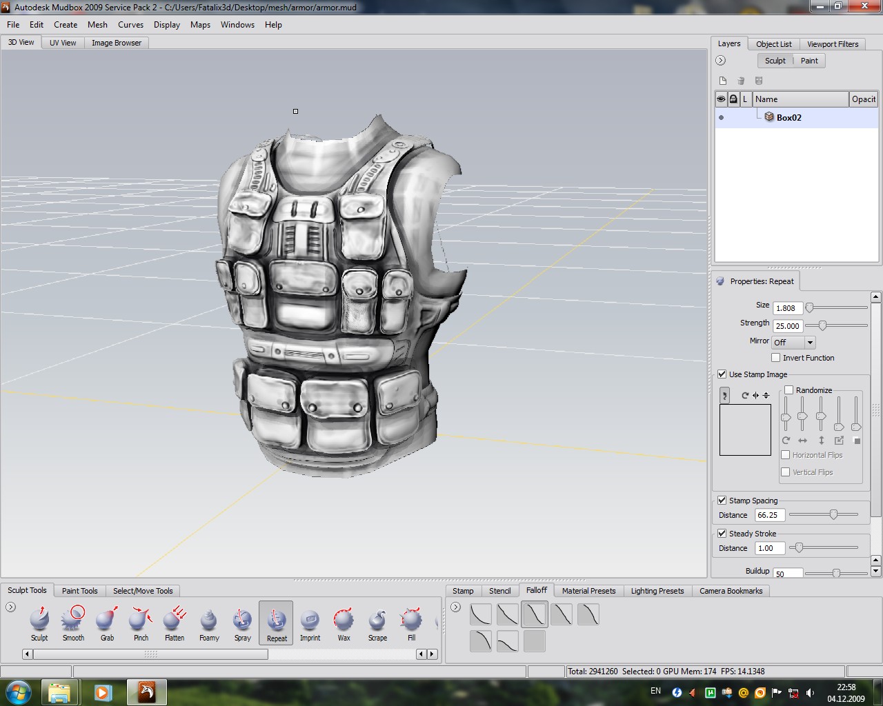 Ну времени мне кажется еще море))), насчет модели пехотинца, начал я скажем не с того места  , а именно с жилета ну там накидал всего остального на 6 миллионов поликов и тут я заметил что болванки та нет! Опа весело заганяю в Max, PolyCrouncherom оптимизирую (сетка получилась сами знаете откуда будто), затем анврап и пытаюсь снять normal (снялся), AO не в какую, ладно но вот еще прикол я сделал одну руку правую и Miror'om отзеркалил, тут я заметил такой интересный эффект в Max'e шейдер становиться черным,а в Xorse он как бы задом наперед (если свет спереди, то освещает он заднюю часть! Oo) Целый день я пробывал что то получалось что то нет. Но понял я одно что я сам подход выбрал неправильный. На следующий день со свежими мыслями начал воять своего морпеха, за пилил lowPoly болванку накидал обмундирование и т.д заготовка готова теперь осталось допилить ее в MudBox'e)).
