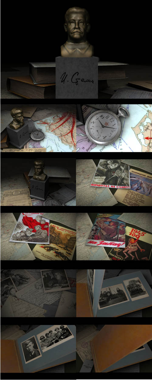 Cкринсэйвер посвященный Дню Победы и Верховному Главнокомандующему ВС СССР И.В. Сталину. Скринсэйвер представляет собой 3D модель бронзового бюста Сталина, помещенного в некое пространство, имитирующее музейную экспозицию, составленную из артефактов военного времени. http://ifolder.ru/23384693