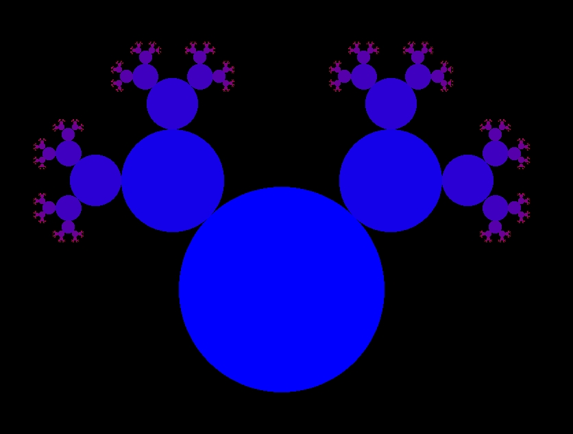 От каждого круга отходит два круга с радиусом чуть по-меньше.И так у каждого.