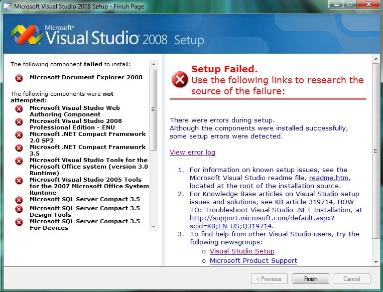 При установки Micrsofot Visual Studio 2008 вылетает ошибка...