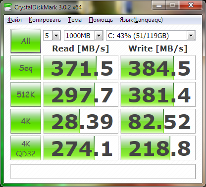 Подключаем диск в порт SATA-II и тестируем (без мухлежа с данными 0x000).
