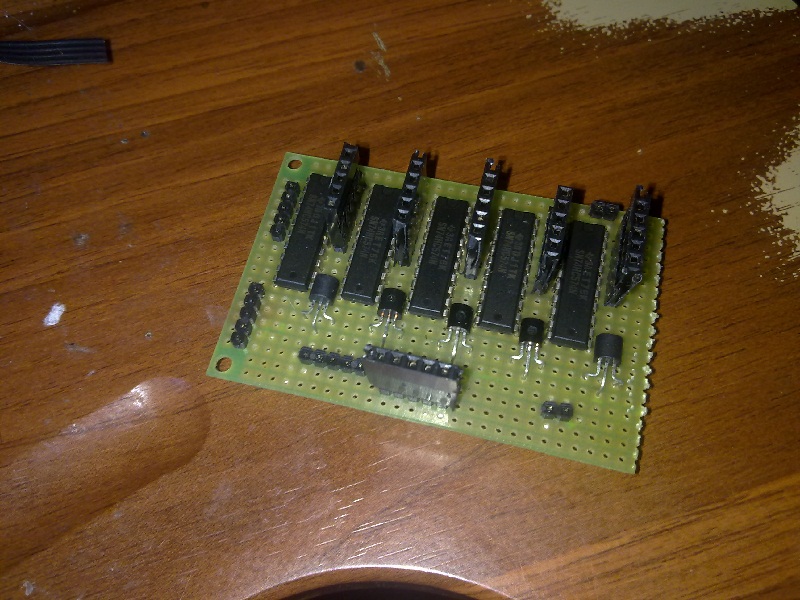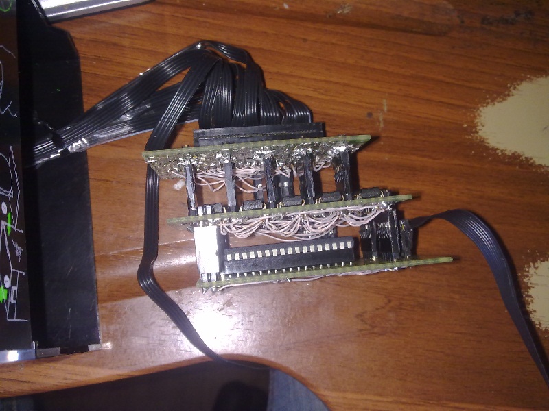 Поигравшись и приблизительно поняв как что работает (разумеется кроме принципа работы МК, больно страшное на тот момент это было устройство для меня, и самое дорогостоящее из всего купленного) уже приступил к планировке расположения деталей на макетных платах. Грамотно всё распланировав на 3 слоя и наломав макетки я приступил к пайке.