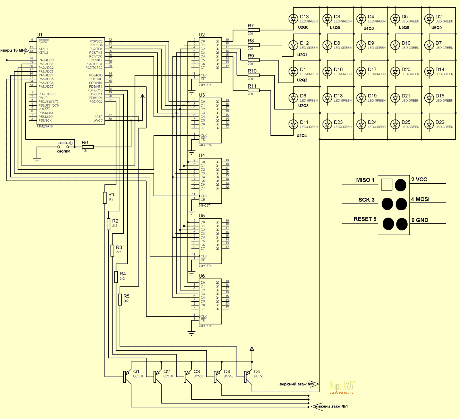 За основу была взята схема с РадиоКота (в целом, весь урок сборки был вызубрен и реализован именно от туда):