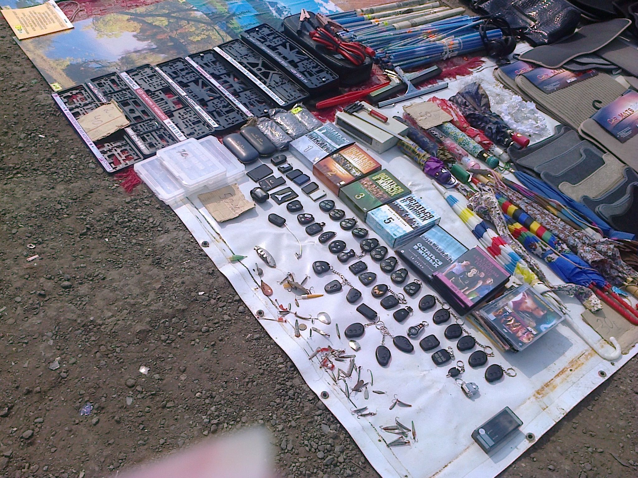 Разнообразия добавилось: парфюм (wtf?!). Дроч-коллекция подборка эротических ретро-журналов (ЕМНИП там и вырезки из газет были!). Живые красноухие черепахи. Я только теперь задумался, что "товар" не просто "ни к месту", но вообще-то опасен: если черепашки доставлены контрабандой (думаю, что это всё же не так), то они могут быть больны как изначально, так и в силу "бережного" отношения. Но, документы и разрешения я не проверял, так что не буду наговаривать. К тому же - это был единичный случай. На всякий случай напомню: животных не стоит приобретать у метро и на не оборудованных торговых точках - воспользуйтесь зоомагазинами, питомниками, выставками. Продолжим. Посуда, статуэтки (модные одно время). В одном месте продавалось всё - даже невзрачная табуретка (которую можно было принять не за лот, а за сидение для продавца) имела соответствующую сопроводительную надпись. Магнитофоны, советская военная форма, значки, монетки, каски (разные), сгнившие патроны и гильзы, пулемётные ленты (последнее, всё же, в лавках посолиднее).
