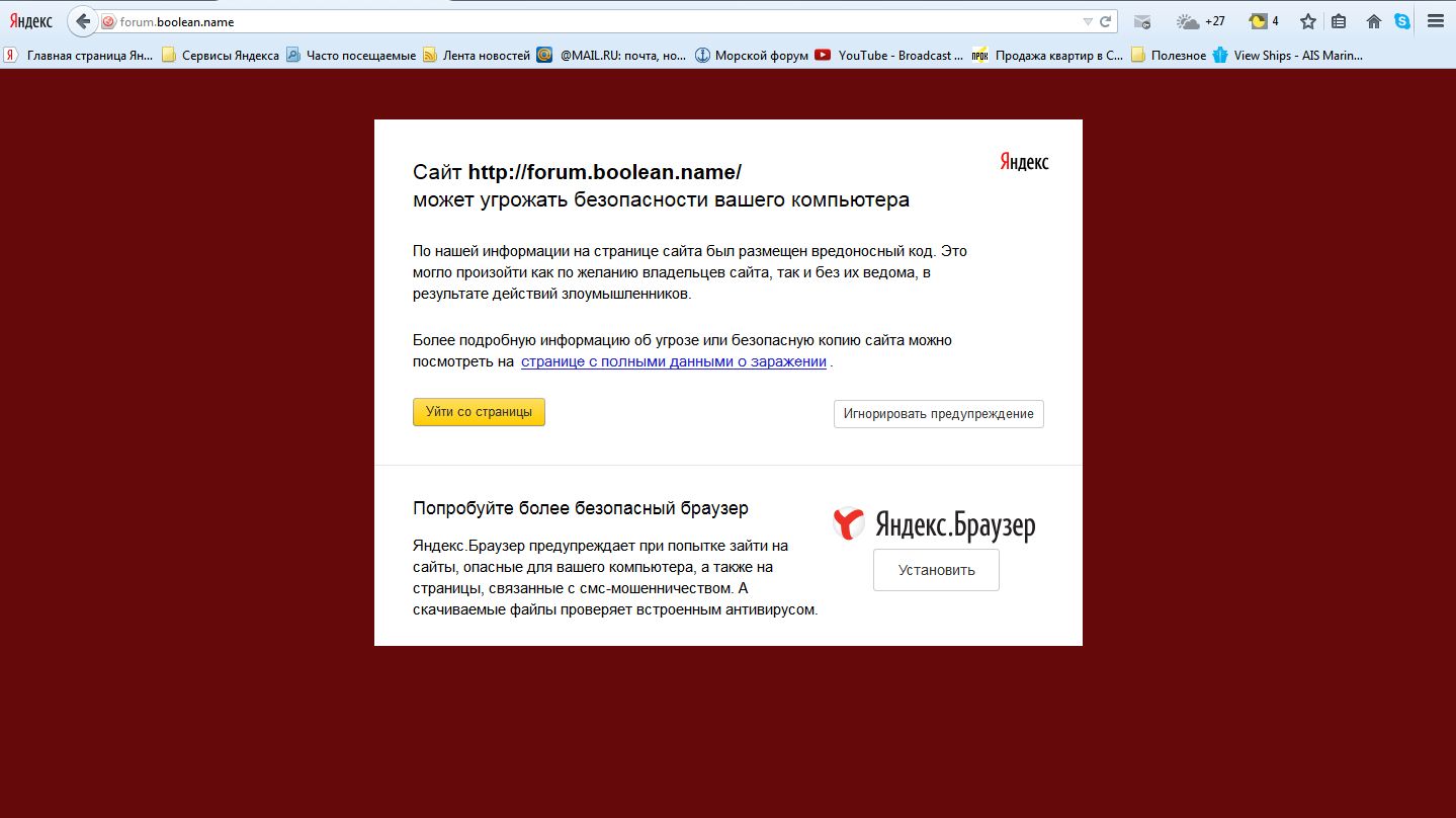Яндекс предупреждает на Булке вирусы.
