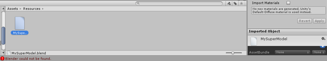 Перетаскиваем .blend модель в Unity но так как путь к блендеру изменен юнити не сможет его найти и соответственно не сможет импортировать .blend модель в проект.