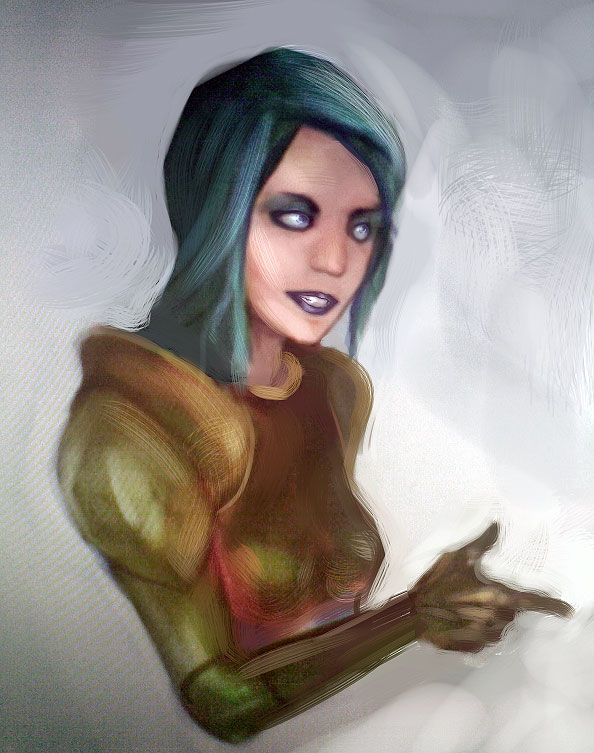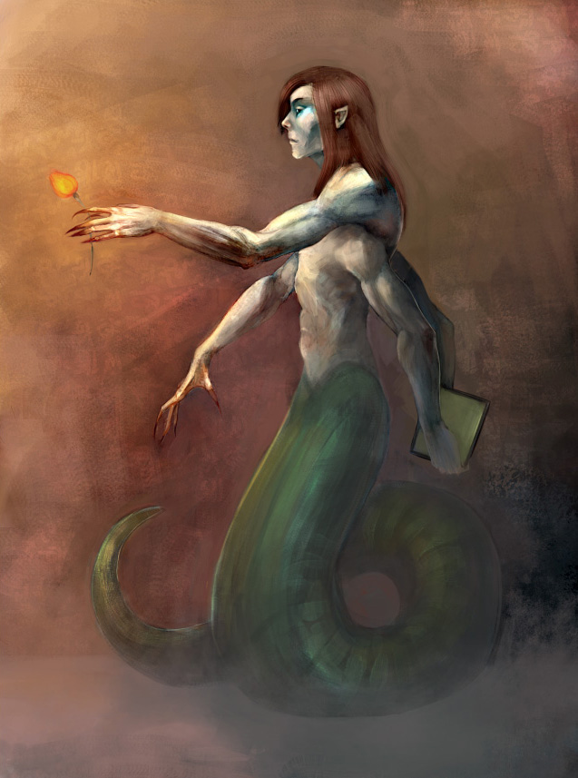 В рисунке нага чувствуется знание анатомии, а вот у девушки с пропорциями проблемы, или ракурс неудачный. И детализации бы побольше, было бы вообще6 круто. Понравилось!