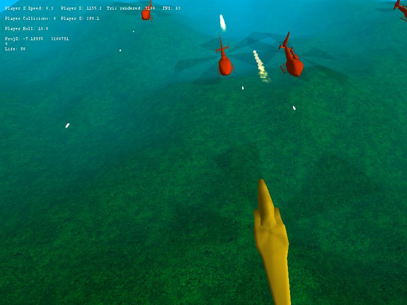 Краткое описание: аркадная леталка. Игрок управляет боевым вертолетом. Задача - уничтожние врагов (воздушные и наземные цели). По ходу игры возможна покупка новых вертолетов, а также их тюнинг. Тюнинг включает в себя в основном улудшение боевых характеристик машины, но также возможно небольшое изменение внешнего вида, как например выбор типа раскраски и т.д.