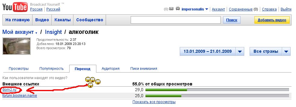 кстати - да: адреса там то и дело меняются (причём вчерашние лидеры исчезают бесследно) - то равзлекательный сайт, то сайт кого-либо проекта гугл, то сайт связанный с ДОМ2. Остаётся неизменным одно - к роликам указанные адерса относятся как Божий Дар к яичнице.Неужели можно купить такую изощрённую рекламу? Или это мега косяк относительно новго сервиса (статистики просмотров).