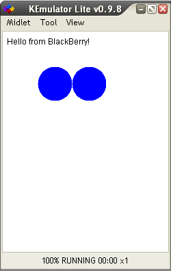 Результаты тестов программы на эмуляторе KEmulator и эмуляторе BlackBerry телефона модели 9800 показаны на рисунках ниже.