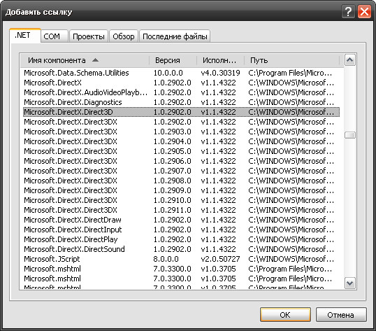 В мануалах от randomize пресутствует строка - add reference to Microsoft.DirectX and Microsoft.DirectX.Direct3D. Как это поподробней (Про то куда ннажать знаю 7 dx прикручивал, вопрос в том какя Dll нужна здесь). Dx9vb.dll - похоже не существует, во всяком случае в Dx SDC я её не нашел.