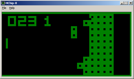 После того, как написал интерпретатор Brainfuck возникло желание написать что-то посложнее. Сначала хотел взяться за эмулятор GameBoy'я, но понял, что пока не осилю. В итоге выбор пал на платформу chip8. Точнее это не совсем платформа, а интерпретируемый ассемблер, применявшийся во многих приставках в середине 70-хх. Интересен тем, что здесь наличествуют память, регистры, стек, таймеры, ну и ввод-вывод разумеется. (кому интересно: http://en.wikipedia.org/wiki/CHIP-8 )