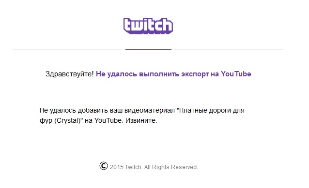 видео с твича копируется на твой канал на ютубе.