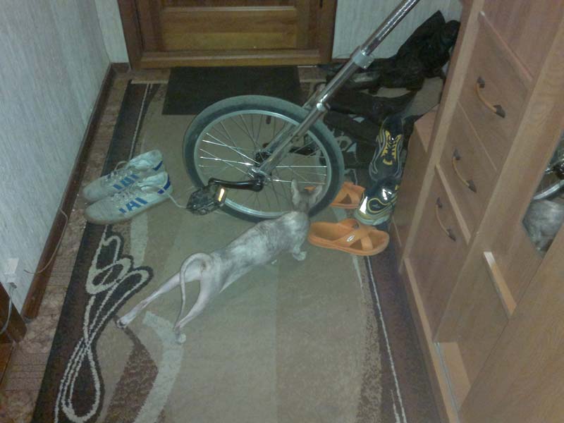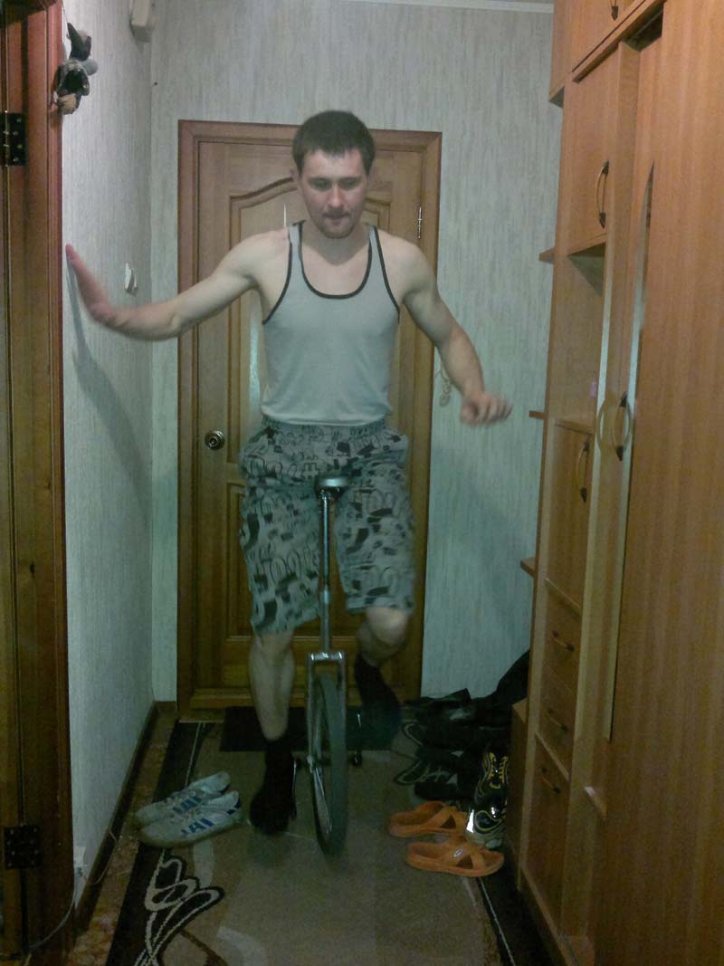 В перспективе я хочу научиться запрыгивать хотя бы на придорожный бортик (высота около кирпича на ребре) (как только седло усовершенствую), ехать поставив ноги на вилку, и жонглировать на ходу (на земле жонглировать умею).