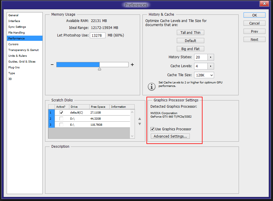 При этом видяха в фотошопе юзается "только" для скроллинга, ну и некоторые фильтры юзают CUDA, но это имхо, не весомо, и на видяху лучше не трать, да и лучше меньше памяти у видяхи, но помощнее видяху.