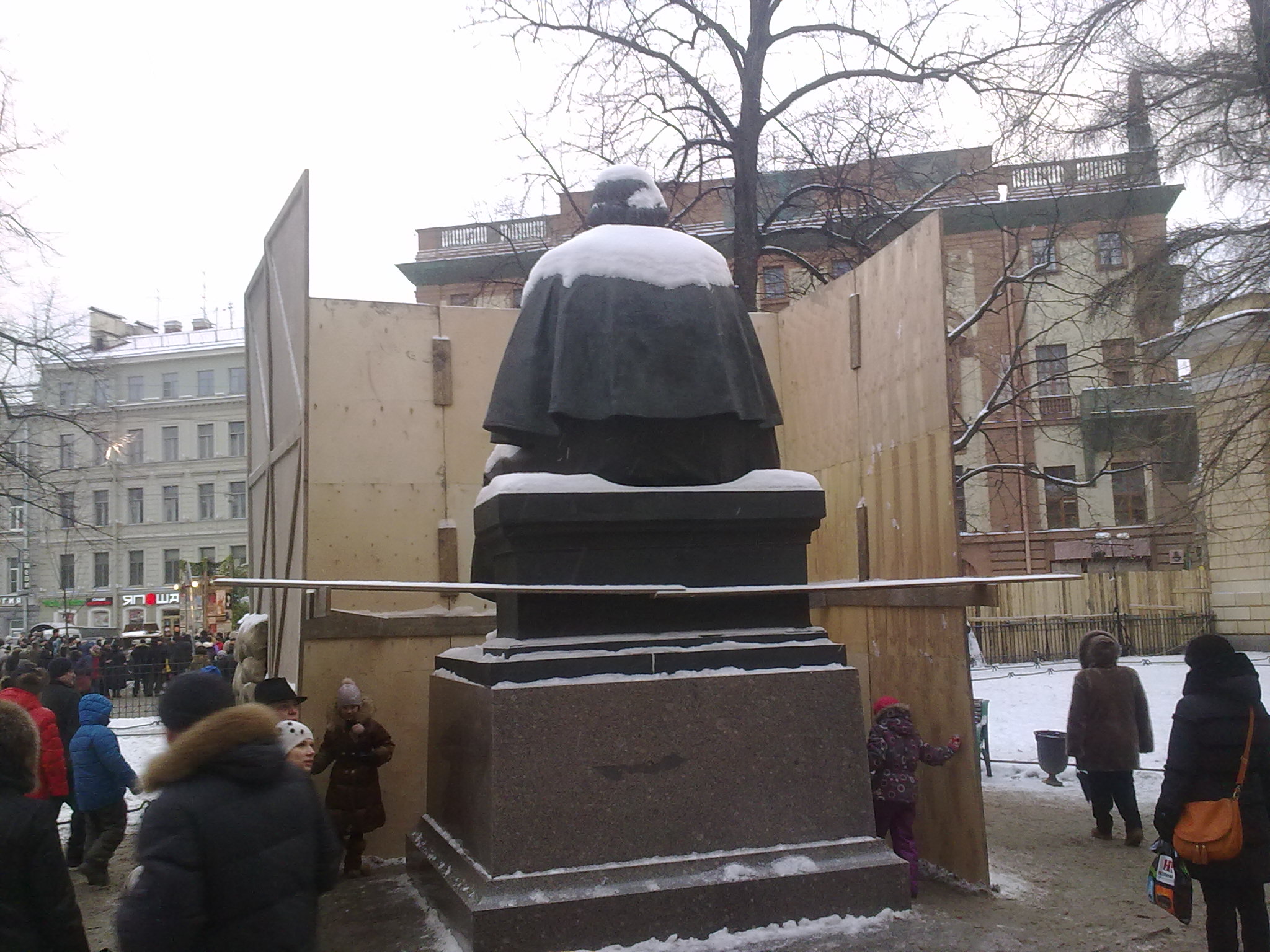 Так во время блокады спасали памятники от снарядов.