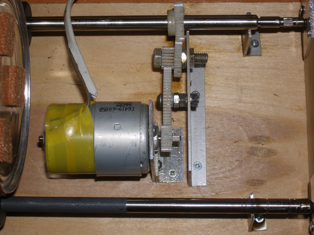 Привод тоже не айс - слишком много шестерен - и все из-за того что нашлись всего 2 шестерни с большим посадочным отверстием. Из-за этого пришлось городить такую передачу.