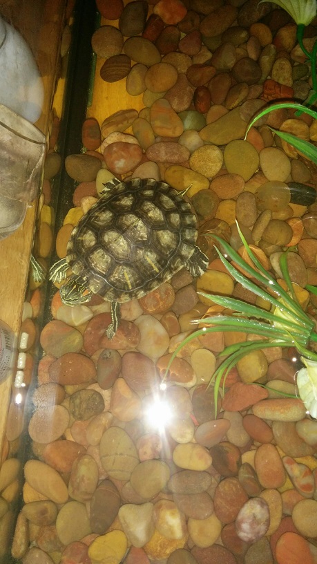 Ну и скоро придётся менять её аквариум, ей уже явно мало места, плюс тот что у меня - времянка, без нужного ей ультрафиолета солнечного (какая то спец.лампочка за 900 рублей была мной приобретена (светит реально "солнечным" тёплым белым светом), стоит рядом в светильнике, но толку от такого света - null). Буду в ближайшее время делать таймер включения и нормальный свет.