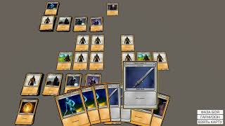 2. Визуализация фазы боя. На этой теме я подзастрял, она довольно сложная, не смотря на то, что все атаки рассчитываются отдельно от визуала, всё это нужно правильно показать игроку. Изменены траектории движения карт, теперь карты бьющие в базу или властителя летят по другой дуге, где карты игрока летят по правой, а карты оппонента по левой. При этом если происходит ситуация, что у игрока например катапульта, а у оппонента какое-то существо бьющее по слоту линии, то это существо взводится для атаки, после чего ждёт пока катапульта нанесёт удар по своей цели и вернётся в исходное положение, а далее взведённое существо уже наносит удар по этой катапульте. Во всей этой визуализации главным было исключение прохождения мешей карт сквозь друг-друга, я постарался предусмотреть все варианты, по крайней мере мне пока больше не удалось создать ситуации, что одна карта пролетает через другую.