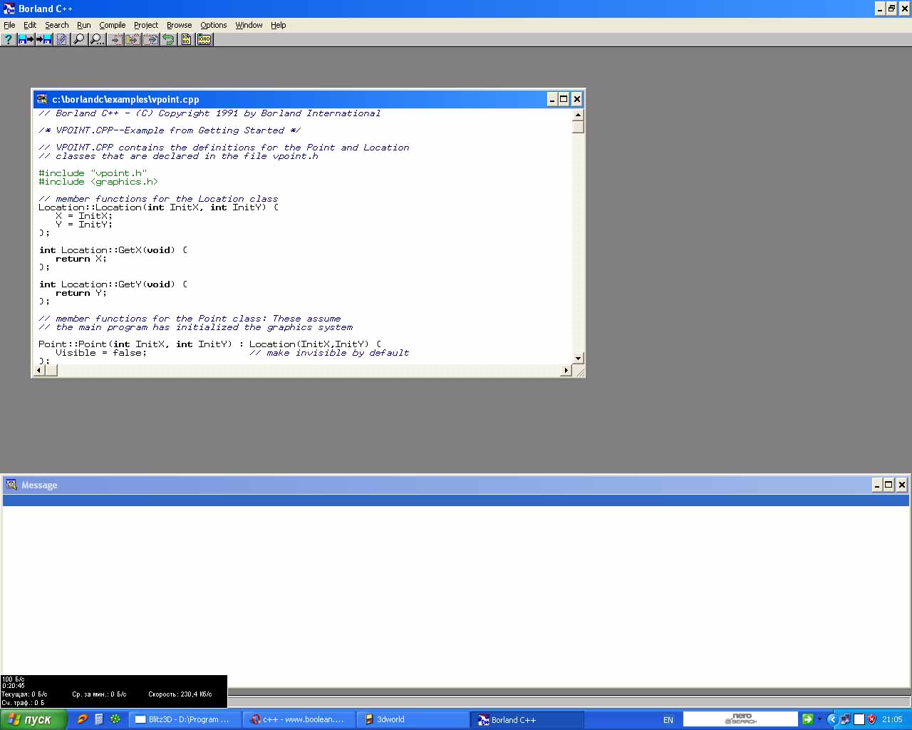 Ребят помогите найти обичный c++ 6.0.Вообщем я начинал его изучать но потом кудато дел...куда уже не помню.Второй раз качаю всякую фигню(ну не фигню конечно,но мне это не нужно).Я в них не розбераюсь,знаю что когда то качал она занимала 100 метров.А сейчас скачал на 700,но там столько заморочек что я не розберусь.Мс тож не надо.Мне бы попроще версию.Правда я уже забыл как она называется Borland или Builder что-то в этом роде.