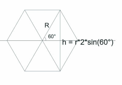 Зная r можно вычислить координаты всех точек (x = cos(угол)*r ; y = sin(угол)*r ; углы - это 60°, 120° и т.д., т.е. все, что помечены линиями внутри фигуры)