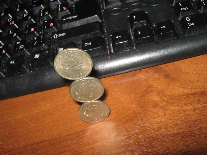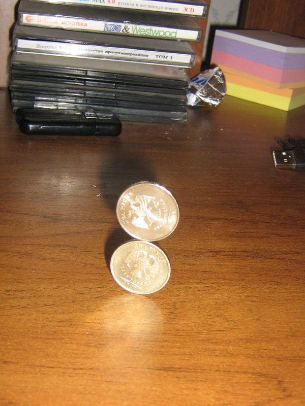 три монетки одну на другую тоже реально поставить.