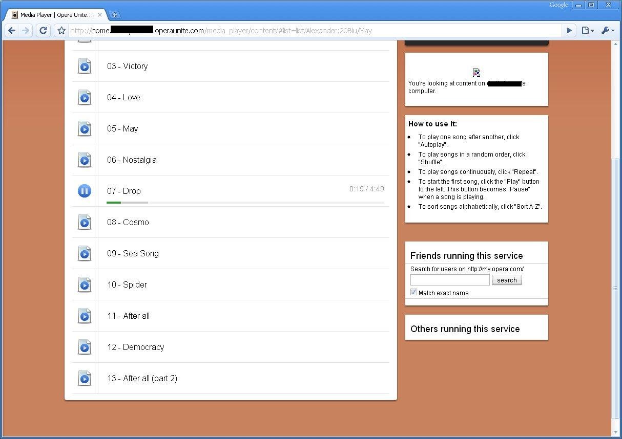 которая моментально доступна с сервера operaunite как только вы включите програму