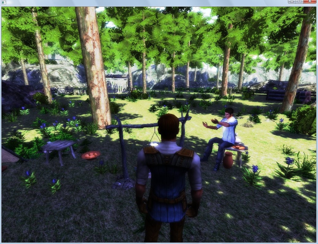 Скромный апдейт, сегодня несколько часов провел в попытках анимировать модель NPC персонажа который был найден в сети ... уф 480 кадров позади, теперь он сидит и болтает, а в перерыве смолит косячок "Черный Робар  " думаю завтра к нему присоединится товарищ(и)  . Хотел приделать источник частиц к модели сигареты но пока не чего не вышло (зато теперь в котелке что то приятно булькает  , также с 3d звуком поигрался теперь костер приятно потрескивает когда к нему подходим ) Что тут сказать анимация штука безумно интересная хоть и получается она пока сами понимаете какого качества))).