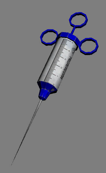 Создана модель малой аптечки. Это шприц, внутри него крутится что-то типа углеродной гексагональной сетки (пародия на CrySis, FEAR и т.д. - там этим любили баловаться) Спасибо Arenshi за то, что растолковал, как сделать постоянный поворот на анимации.